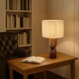 Atop the base sits a textured beige fabric shade that diffuses light softly, creating a warm, ambient glow. The neutral tone of the shade ensures easy coordination with a wide variety of interior color palettes, while its texture adds depth and sophistication. This lamp not only enhances your lighting but also doubles as a decorative piece, making it an ideal choice for those who appreciate light luxury style and modern natural aesthetics.