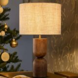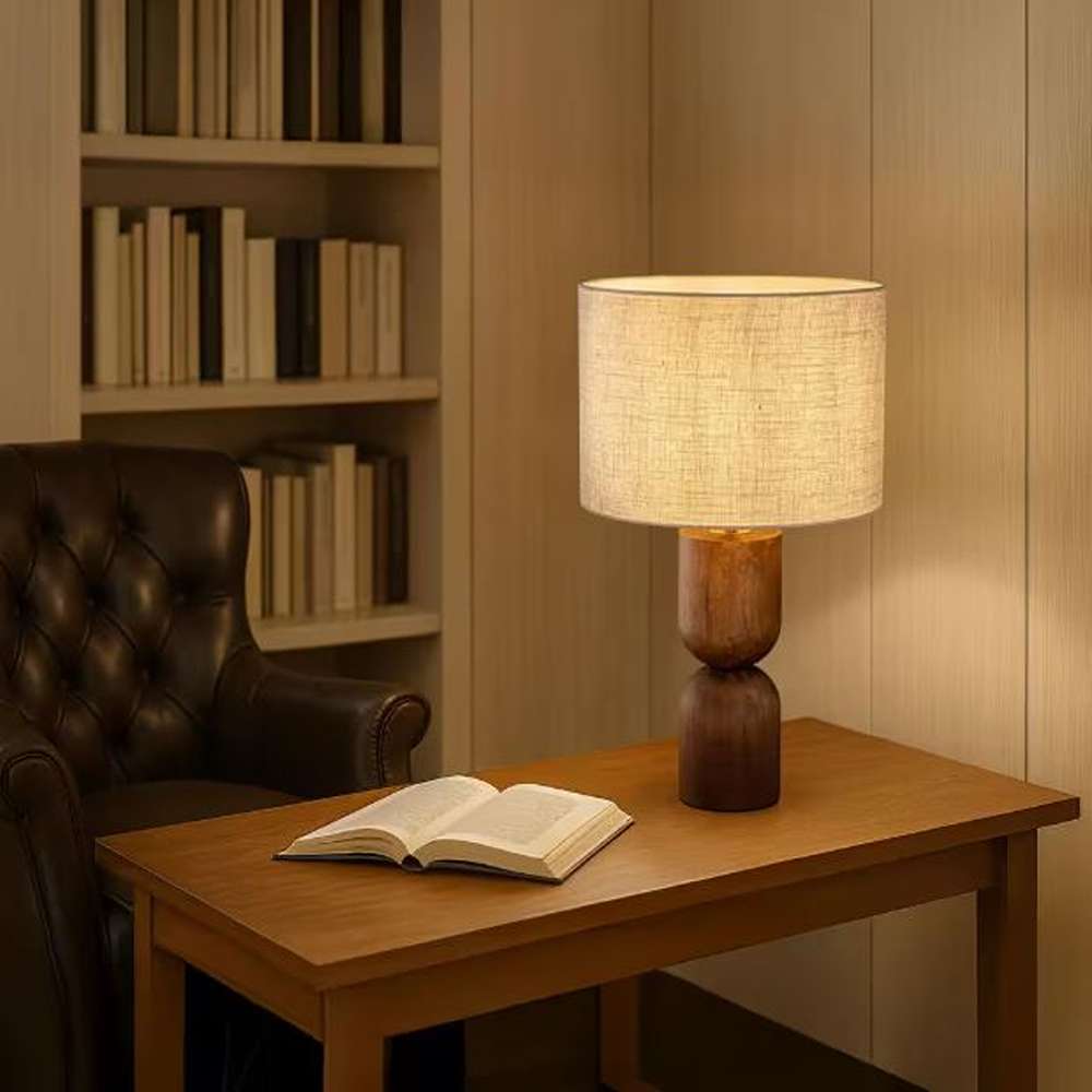 Elevate the look and feel of your interiors with the Vintage Bedside Table Lamp, a stylish fusion of sculptural form and functional design. This lamp is thoughtfully crafted to bring a sense of refined warmth and timeless character into your space. Featuring a sturdy honey brown wood base with elegant ridged column detailing, it showcases the natural beauty of wood grain while adding architectural interest to your décor. The rich wood tones are complemented by aged brass accents, giving the lamp a subtle vintage-inspired charm that pairs beautifully with both classic and modern furnishings.